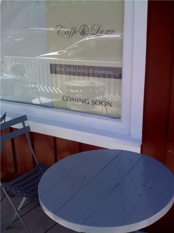 With an outposts in Santa Monica and Brentwood, Caffè Luxxe is under construction at the Brentwood Country Mart next to the new and ridiculously popular Sweet Rose Creamery. Favored by crazed coffee snobs, their lattes are probably the best in this part of town. Their artisanal baked goods and sandwiches are excellent. Too bad BCM can’t fill that cavernous hole left by City Bakery’s departure, it feels creepy walking through its carcass to get from one end to the other…