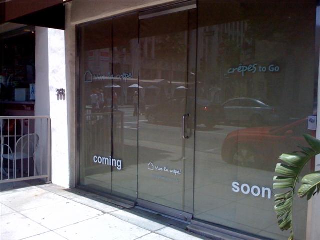 It looks like a crepe chain, La Crepe Parisienne, that started in Mexico is going into the vacant storefront at 563 Camden in Beverly Hills, next to Teuscher. The only other location in the US is in New York on Spring St. The online menu lists a variety of sweet and savory crepes prepared upon demand, as well as Illy coffee and “healthy bottled beverages”. Check out the menu at vivelacrepe.fr/