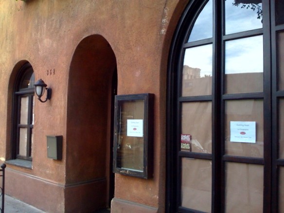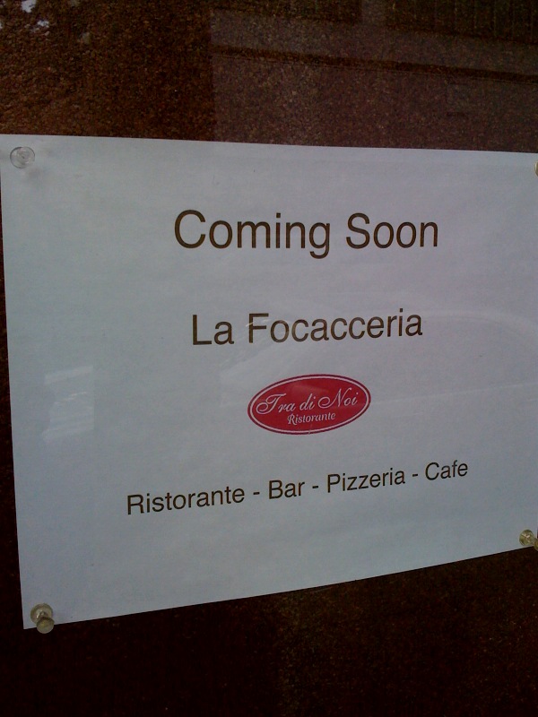 It looks like Malibu’s old-school Italian staple, Tra di Noi is expanding into Beverly Hills. It didn’t take long for another old-school Italian, Prego at 362 N. Camden to clear out and make way for Tra di Noi’s spinoff La Focacceria, as per the sign on the door. No word on the menu yet, but I’m going to take a big leap here and guess old-school Italian. I’ll keep you posted… In the mean time, here’s Tra di Noi’s menu: http://www.tradinoimalibu.com/MENU.htm.