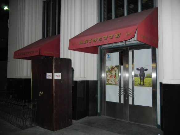 On Wednesday night, I was admiring the newly posted liquor license application outside the forthcoming The Misfit restaurant, the newest from the people who brought you La Grande Orange, LGO Hospitality, going into the old Anisette space at 225 Santa Monica Blvd in SM, when I ran into the chef Bruce Kalman, (formerly of Chelsea’s Kitchen in Arizona, another LGO eatery) who kindly let me snap a photo. Look for an opening in “a coupla months.” Notice the $200 cabinet for sale in front… http://www.themisfitrestaurant.com/