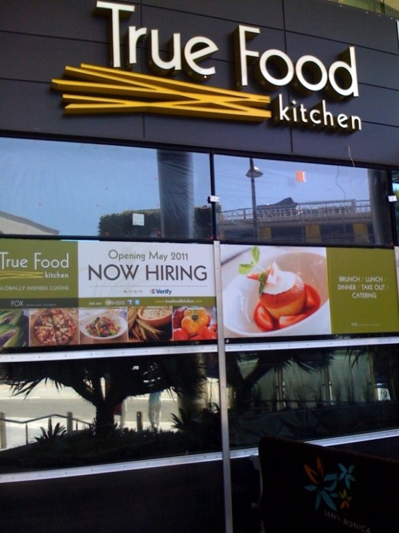 With the culinary hiring frenzy in Santa Monica, it was no surprise that True Food Kitchen, the “seasonal, sustainable, and local” restaurant being developed with natural health guru Andrew Weil, was looking for staff for its new ground floor Santa Monica Place location.  (Three other locations exist in California and Arizona) But recently tacked up next to the help wanted posters was this announcement of an opening date of May 9th.  So there you have it… Read more at http://www.truefoodkitchen.com/.