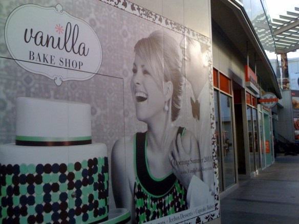 With all eyes on tomorrow’s opening of The Market at Santa Monica Place, we mustn’t forget about the goings-on in the Century City Shopping Center. I noticed yesterday that Amy and Jeremy Berman’s Santa Monica cutie, Vanilla Bake Shop is going in on the ground floor underneath the food court. You’ll be able to get your cupcake babies sometime this summer. http://vanillabakeshop.com/