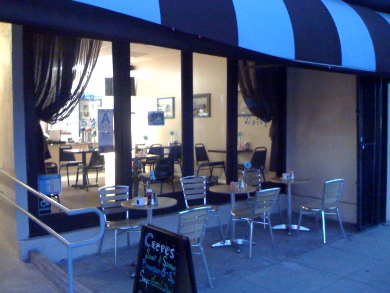 Driving by the Whole Foods at Wilshire and 23rd in Santa Monica, I noticed a new cafe near the corner at 2393 Wilshire.  Run by two adorable sisters, The Blue Daisy has been open for about a week now.  Although they are open for breakfast, lunch, and dinner, the extensive menu has a “brunchy” feel to it and focuses on crepes, sandwiches, and egg dishes.  With outside tables, this little charmer would be the perfect place to enjoy a leisurely breakfast on a Sunday morning…