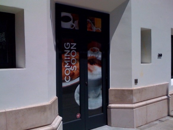 Work is underway on a new cafe at 360 N. Camden in Beverly Hills. Located inside the new José Eber Hair Salon, 360 Cafe will be opening “very soon”. (Or so I was told.) With entrances from the street as well as directly into the tony new salon, the petit cafe will feature a simple menu of coffee and cafe items featuring baked goods from the new-ish La Focacceria Tra di Noi next door. (While investigating the new cafe, a kind receptionist at the salon let me look around unescorted until I stumbled into the station of José Eber himself, who dropped his scissors and stared at me as if I were a janitor stumbling into surgery. I was promptly walked out.)