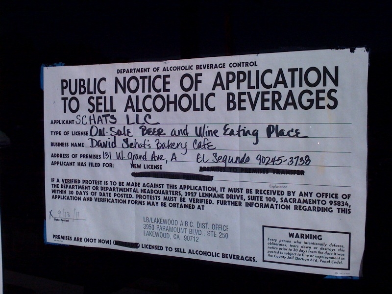 Nearing completion at 131 W. Grand Ave. in El Segundo, is Schat’s Bakery Cafe,  a Dutch-style restaurant to be run by David Shat, whose family maintains a smattering of variously named bakeries across California.  I’ll keep my eye out for an opening date, until then, read more at schatselsegundo.com/.