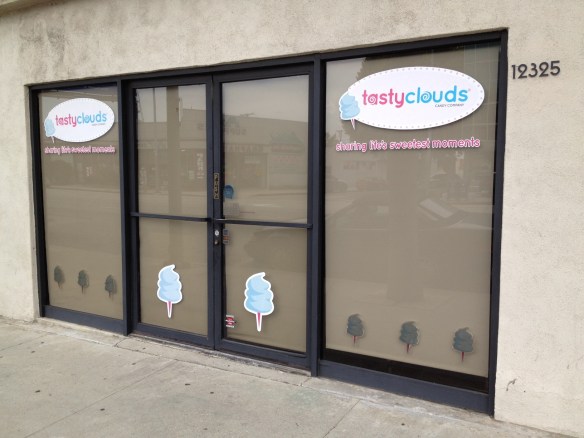 On a nondescript block of Santa Monica Blvd. west of Bundy, I noticed the papered-over windows and signs of something I hadn’t heard of before, Tasty Clouds Candy Company. According to their website, Tasty Clouds was founded by Nina Rodecker and specializes in providing hand-crafted, house-made from scratch, organic and designer cotton candy and catering services to events (as well as sno-cones, caramel apples, and other decadent treats). Not much more information on the space they’re taking over at 12325 Santa Monica Blvd. in West LA, but you can read more about the company here: tastyclouds.com.