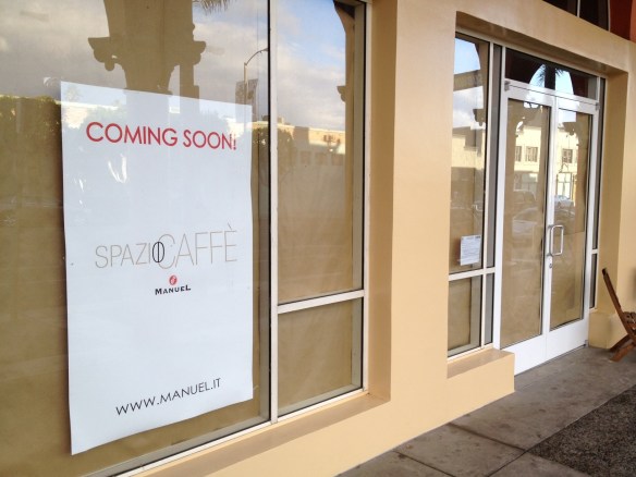 Recently, I told you about the upcoming West Coast premier of a coffee shop by Italian specialty coffee brand Manuel, Spazio Caffè, under construction at 1511A Montana Ave. in Santa Monica. Looks like they’re planning a second location as indicated by the signs in the window at 245 S. Main St., in Venice, between Exhale Yoga and Subway. Based in San Vendemiano, Italy and with locations throughout the world and one US location on the East Coast, the artisan coffee purveyor will also likely offer its line of selective teas, chocolate, baked goods, and merchandise. No word on an opening date yet, but as always, I’ll keep you posted… Read more at: manuel.it/en/spaziocaffe.