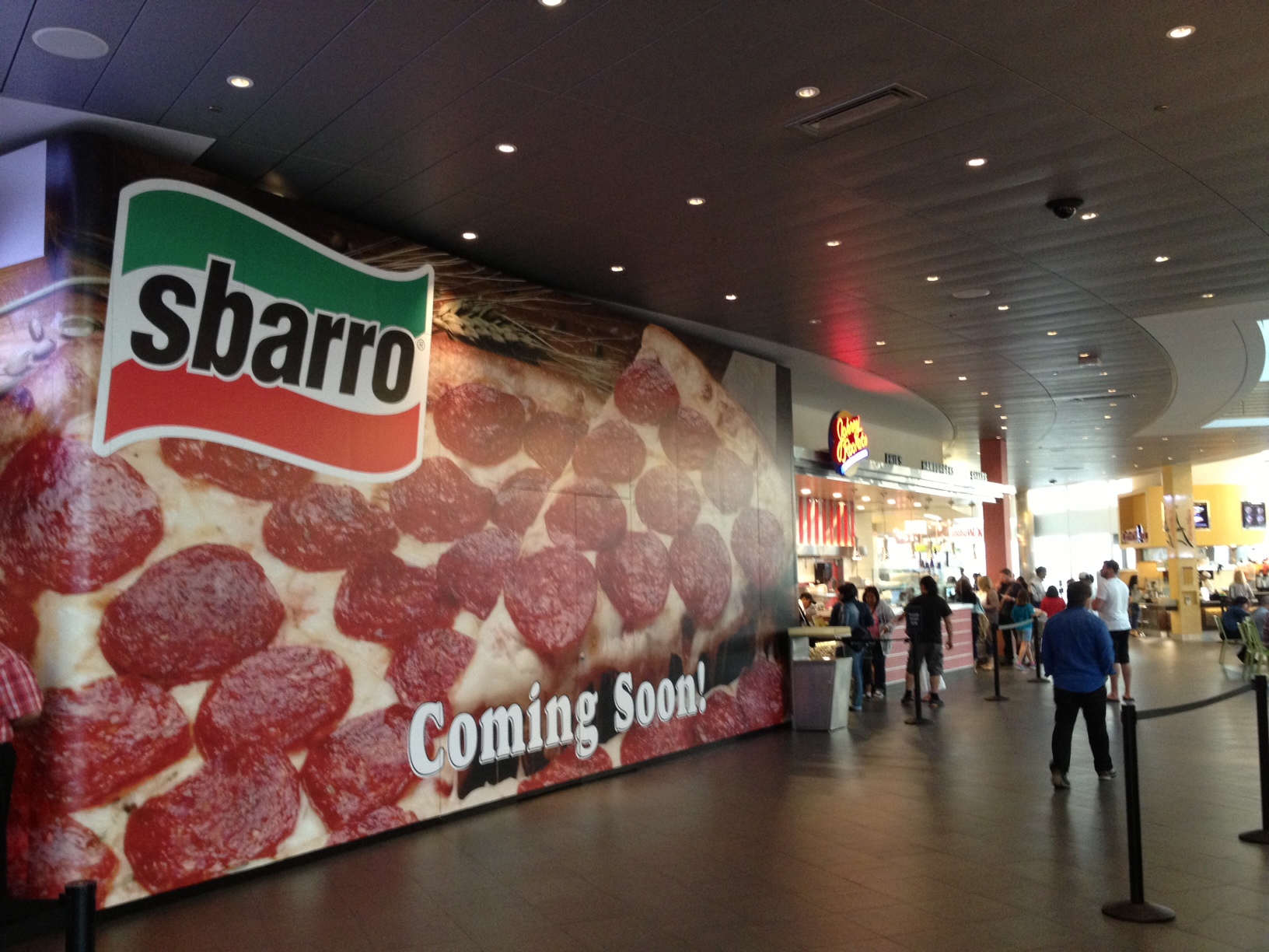 You could be forgiven for thinking that there already was a branch of ubiquitous mall pizza chain Sbarro in the food court of Santa Monica Place. But there wasn’t… it was a branch of Stephano’s Pizza, the very same as is located on the corner of The Promenade and Arizona, just blocks away. Well, Stephano’s has quit the food court and in its place will shortly be a brand-spanking new branch of the aforementioned Sbarro that you can read about, if you must, here.