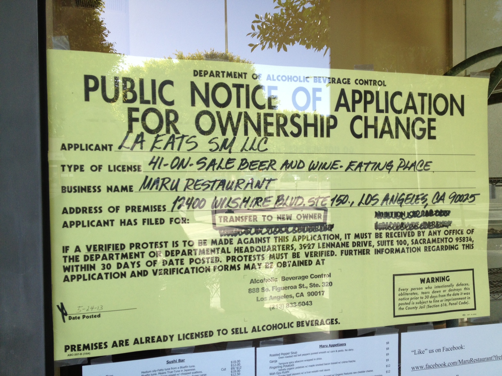 Sushi Sasabune, which quietly slipped out of their old space to inhabit the old Seed Bistro at 11917 Wilshire Blvd. is now officially open (but with no signs yet), according to their Facebook page here. Replacing them in their old digs just blocks away at 12400 Wilshire will soon be Maru Restaurant. With one location in Valencia, according to their website Maru offers a menu of seasonally inspired modern French, Japanese, and California influences using organic farmer’s market produce and fish flown in from Japan. Construction is currently underway with no news of an opening date, but I’ll keep you posted… Check out their website here: maruvalencia.com.