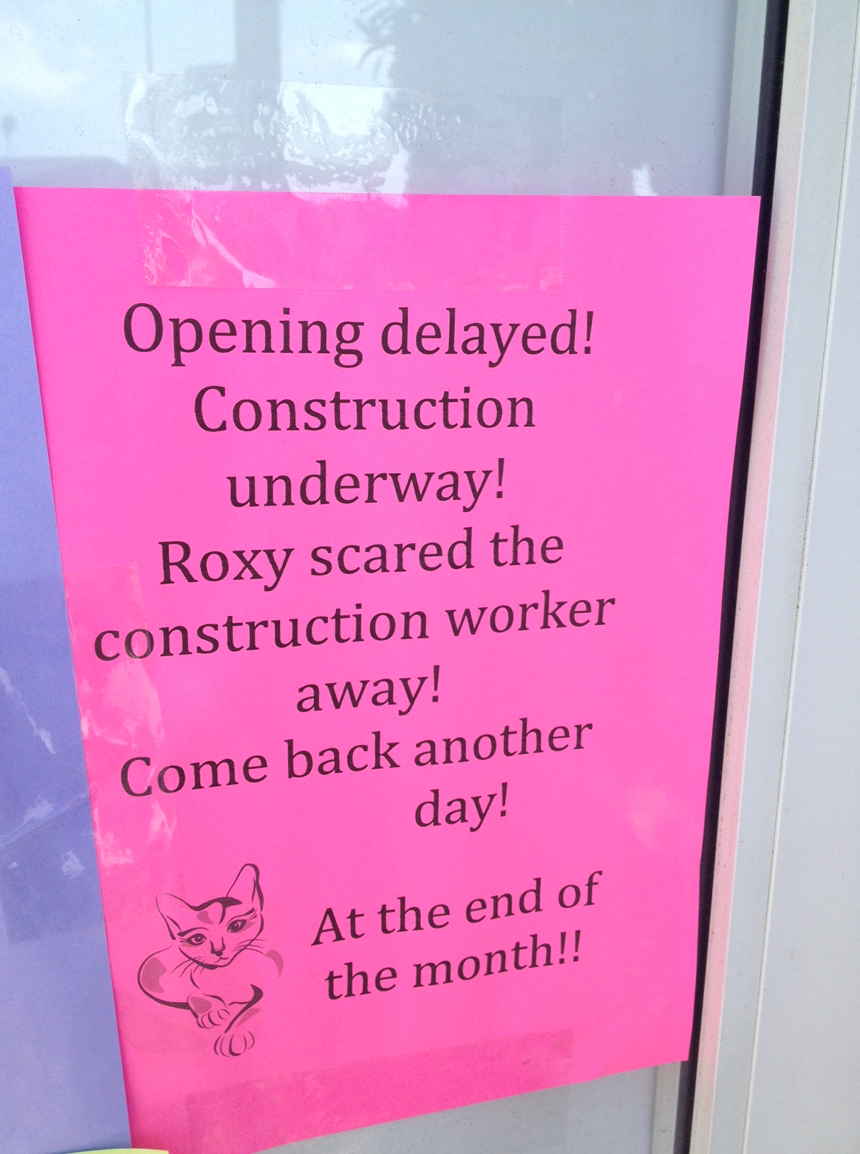 Going into the colossal and still-developing Playa del Oro complex on the corner of Manchester and Lincoln in Westchester is a new eatery, Roxy’s Cafe at 8601 Lincoln Blvd. According to the poem posted in the window, looks like construction has been delayed somewhat but they’re looking for a late June opening. Until then, you can check out what appears to be a tentative menu here.