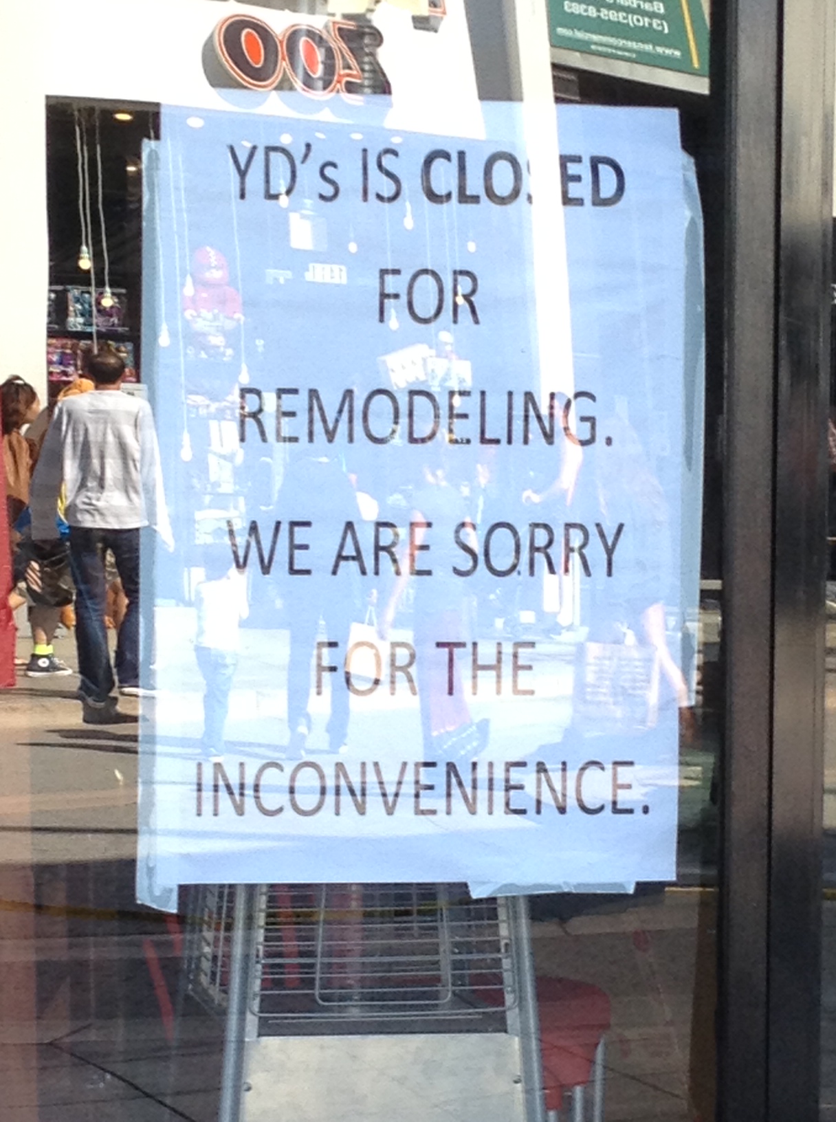 Down but not out… After a late July fire closed local fave restaurant, singles scene, sports bar, and tourist trap Yankee Doodles at 1410 3rd Street Promenade in Santa Monica, questions arose as to what would happen next. But you can’t keep this plucky little phoenix down as indicated by the signs and permit applications in the window. Looks like they’re planning a major remodel. No word on an re-opening date (this is SM after all), but I’ll keep my eye on it…