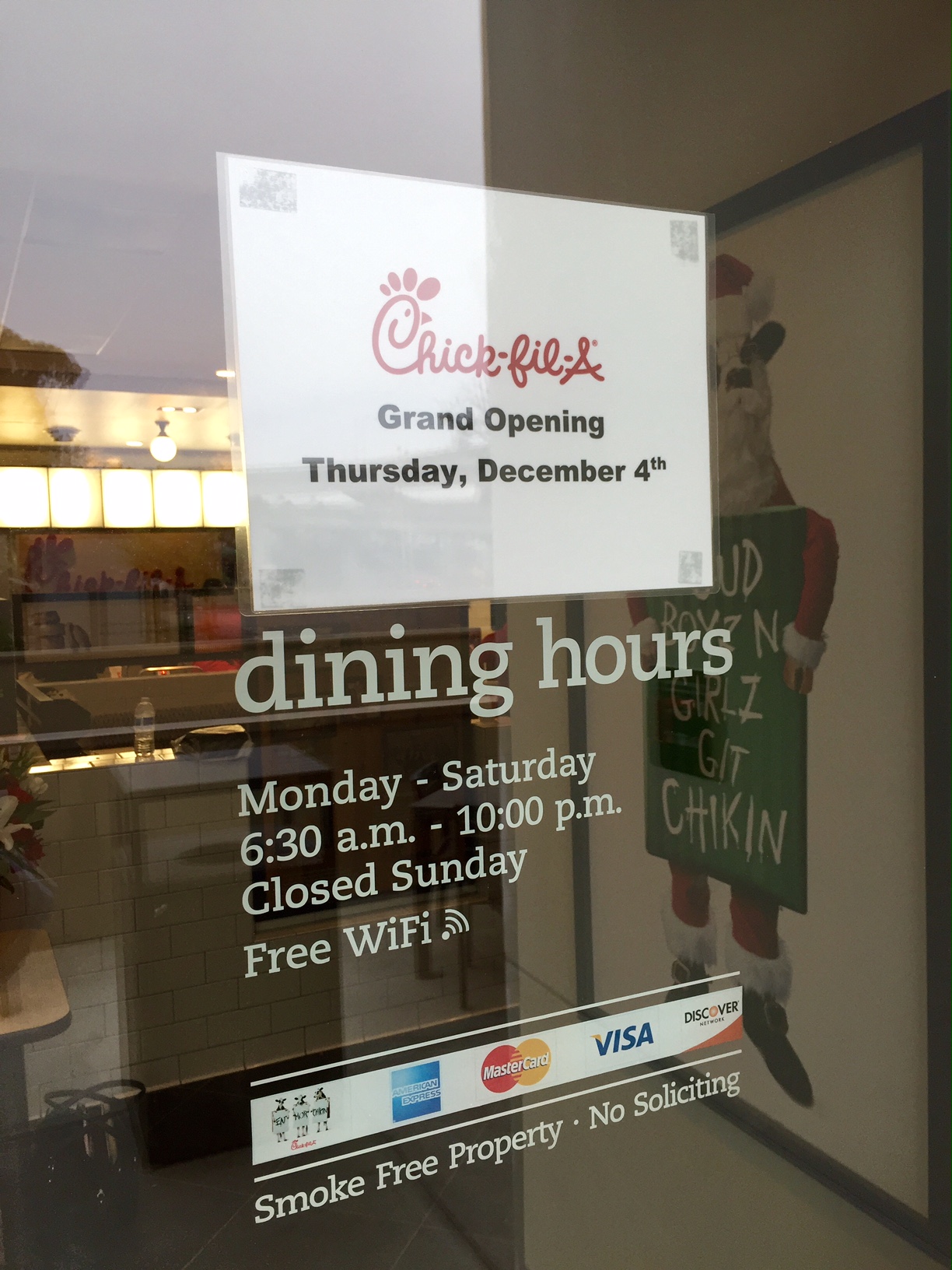 To those of you (and there are a whole lot of you) who have been closely following the impending opening of super popular and occasionally controversial Chick-fil-A just to the west of the 405 at 11750 Jefferson in West LA (corner of Mesmer), comes this happy news: Chick-fil-A will officially be throwing open its doors this Thursday, December 4th. Lines could be tough, and they’re asking you to bring a tent (!), but you’ll be rewarded with their signature sandwiches, games, and a chance to win free food for a year.
