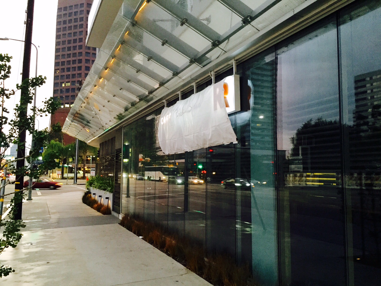 I had high hopes for Café Rockenwagner when I first noticed back in 2013 that it was coming to a new development in Brentwood: It had a bright, mod interior; a fantastic location on the corner of Barrington and Wilshire; and the pleasing Germanic/Californian comfort food of longtime LA chef Hans Röckenwagner. But slowly over the subsequent months, you could see fewer and fewer people sitting at its tables. Sadly, the Café has served its last pretzel burger. The signs are covered over and the place is deserted. No word on what may be replacing it, but until then, Rockenwagner still maintains a few other places around town that you can locate here.