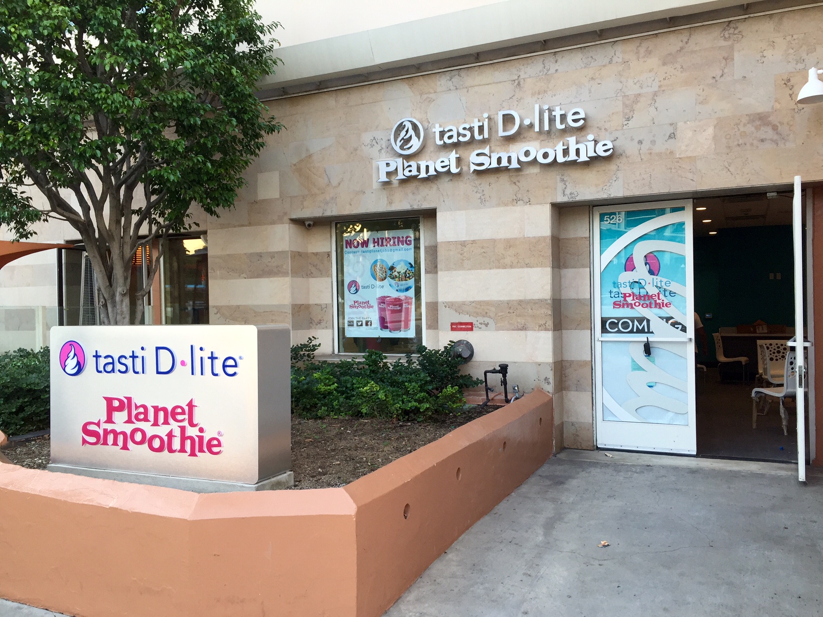 It looks like yet another icy treat shop is hitting the Westside… New York frozen “dessert” brand Tasti D-Lite and sister company Planet Smoothie appear destined for the same space at 526 Wilshire Blvd. in Santa Monica. Besides smoothies (obviously), the concept here is two dairy bases, one vanilla and one chocolate, upon which a multitude of flavors are added producing a dessert with significantly fewer calories than ice cream or frozen yogurt. No word on an opening date although they must be behind as the website promises an early 2015 opening, but I’ll keep watching…