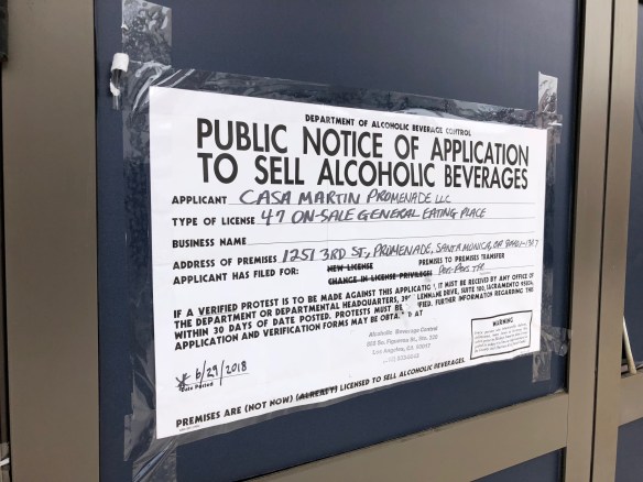Loteria Grill abruptly vacated its prime Downtown Santa Monica location at 1251 3rd St Promenade back in late 2016. Since then, the space has sat vacant. But that’s about to change. Ocean Avenue’s humble tourist crowd pleaser Casa Martin is opening a branch at the location, at least according to a recently posted ABC application. No business name is listed, so I’ll keep watching for more details…