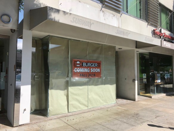 If you follow this blog, then you know about Burgerim’s unstoppable plan to take over the world. The latest evidence? A sign in the window of the old Subway space at 250 S. Beverly Dr. proclaims the location will soon be serving the chain’s signature Lilliputian burgers.