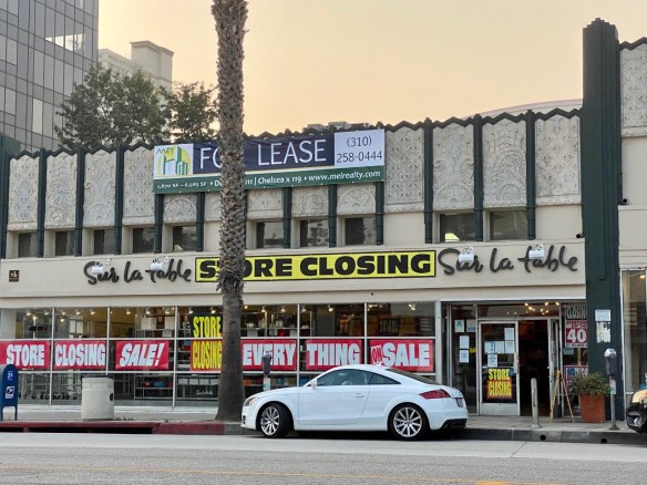 The emporium of all things culinary, Sur La Table looks like it is set to close at 301 Wilshire Blvd. There’s a giant banner across the front announcing the sad news. This particular branch has long been the go-to for local cooks needing just the right size springform pan or imported dijon and will be sadly missed.