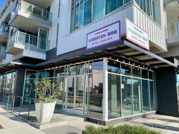 Originally, I had reported that something called Kohi Cafe was coming to the space in the new multi-use complex at 3008 Santa Monica Blvd. in Santa Monica. But plans seem to have changed. A new sign just went up letting us all know that Kissaten Coffee / Wine Cafe is moving in. I don’t know exactly what to expect. A “kissaten” is a type of old-school Japanese lounge/coffee shop… I think. Please feel free to educate me if you know more.