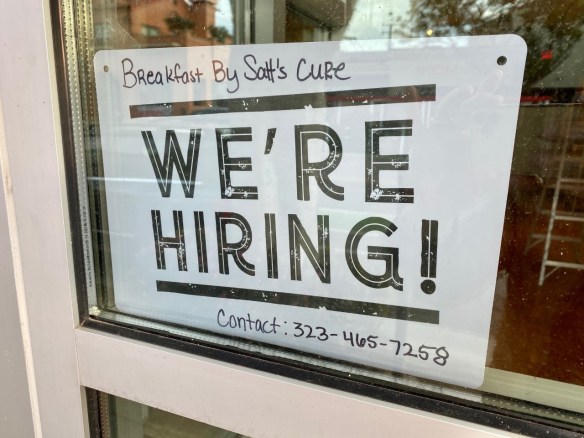 It appears that Santa Monica’s tony Montana Ave. is turning into something of a dining destination… Thanks to a sharp-eyed reader (Thanks Kurt!), I went by 714 Montana Ave., formerly home to Osteria Bigoli which called it quits in Spring of last year. While there’s no signage yet, a small we’re hiring notice spills the beans that the new eatery will be Breakfast by Salt’s Cure. Someone inside did indeed confirm the news. I’m told it will open “very soon”. Until then, check out the menu of the West Hollywood branch, and get very excited…