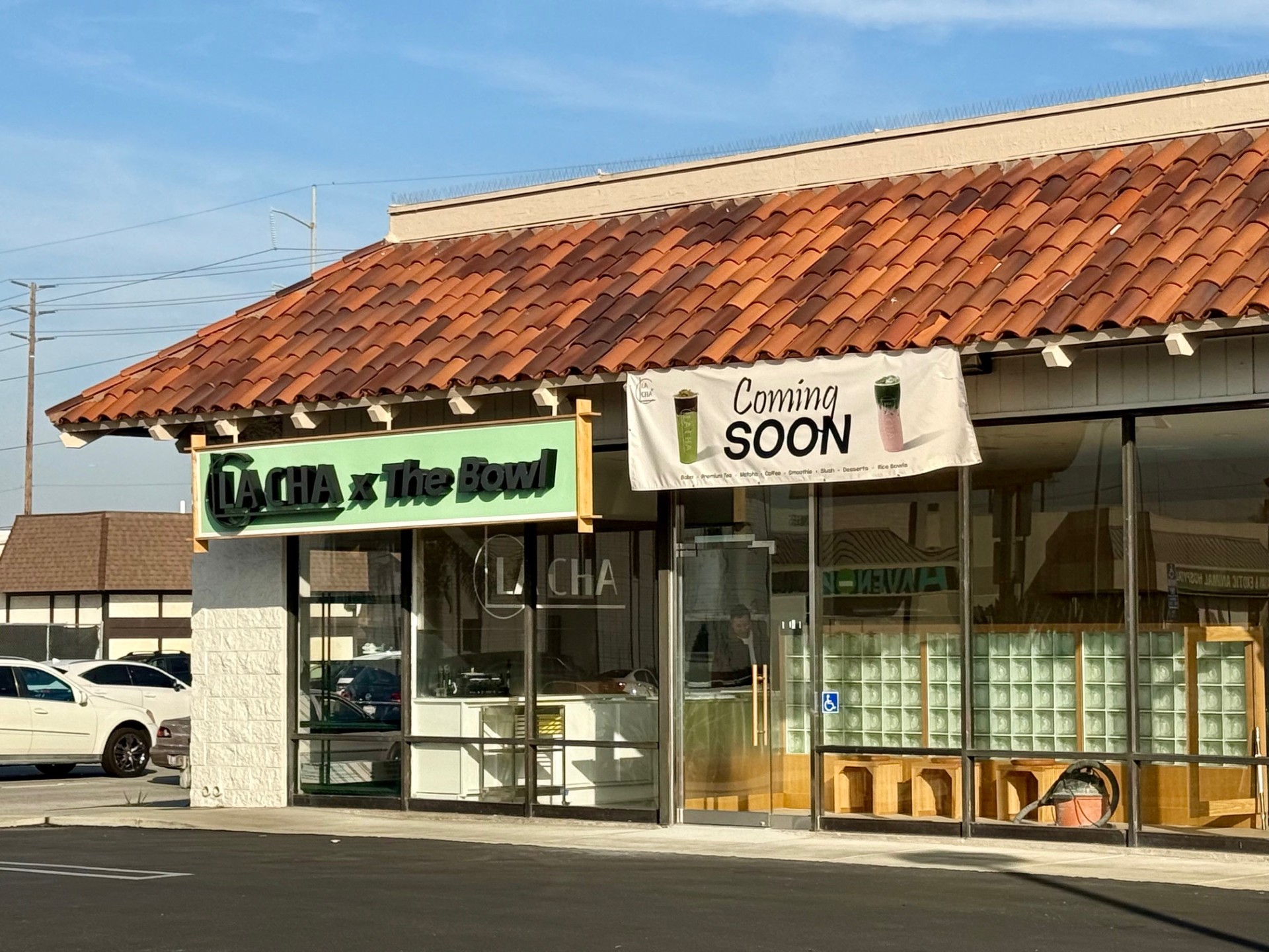 There’s new signage up at 4834 Rosecrans Avenue in Hawthorne announcing the arrival of LA CHA X The Bowl. La Cha has a location in Torrance and specializes as a “vibrant bubble tea destination where premium tea craftsmanship meets creative flavor innovation”. In addition to teas, this location will also offer a menu with such things as Korean sweet and spicy popcorn chicken andmozzarella chz sticks. It looks like they’re almost ready to open.
