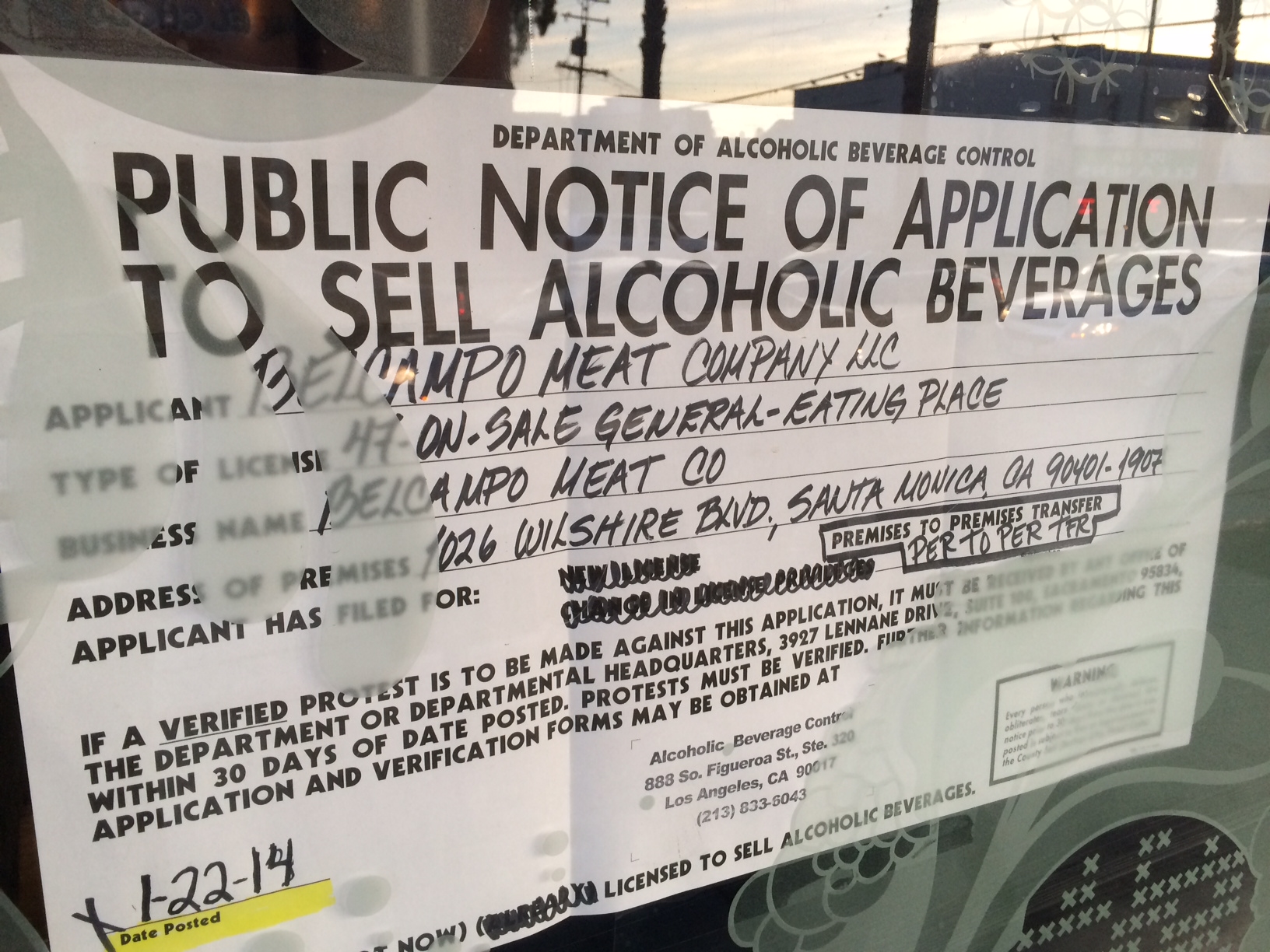 The news was first reported on this two years ago. And then nothing happened. But just this week, an ABC application has appeared on the front of the space at 202 Main St. in Venice confirming that Melrose’s Standing’s Butchery IS moving into the address after all. This means Standing’s selection of ethically sourced local meats, with burgers and beer and wine, but you can read the full skinny on what this will mean for the Seaside Neighborhood on Eater’s original story here.