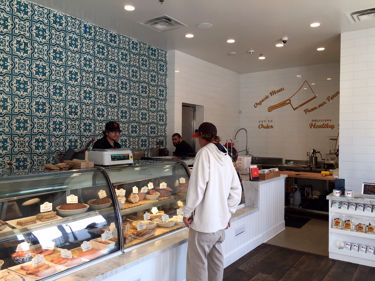 Well, it’s been a bit of a wait, and a whole lot of you have been closely tracking this story. Back in January of 2014, I first noticed signs up announcing that Belcampo Meat Co., the high-end butcher shop hailing from Northern California was taking over the space at 1026 Wilshire Blvd. in Santa Monica that used to house Dakota Lounge. Then back in May of 2014, they briefly opened a pop-up restaurant while construction was going on. Well, after a full renovation of the space, Belcampo opened their retail butcher shop (complete with a Tiffany-style display window) in the front last week and the restaurant with a separate entrance officially opened on Sunday. Look for a menu that features meats that are grass-fed, organic, and humanely raised at their farm at the foot of Ms. Shasta that you can learn more about here.