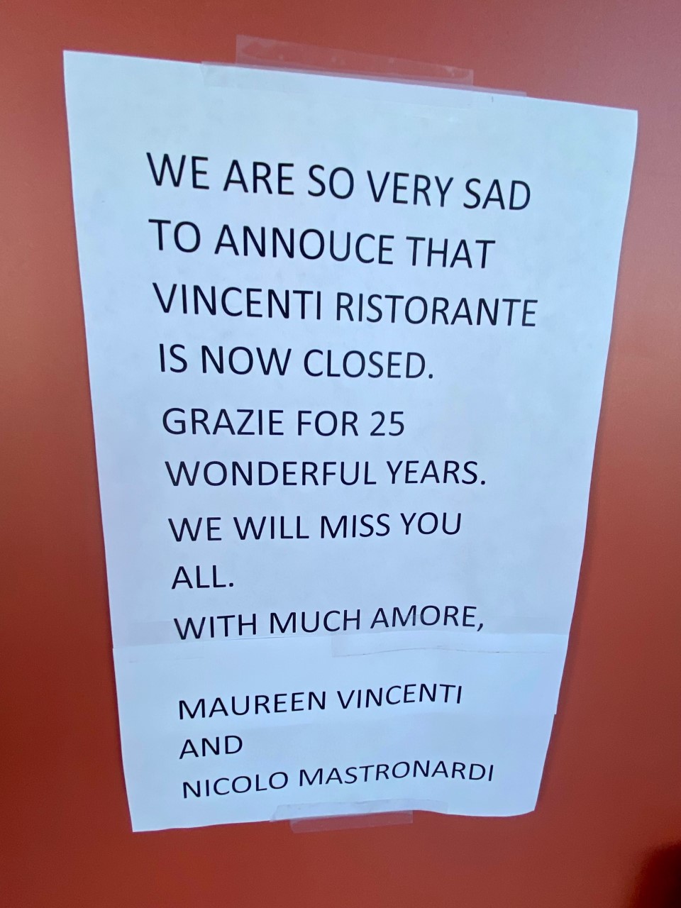 Erratum: This story was originally published with the misspelling of Vicenti instead of the correct Vincenti. My apologies.