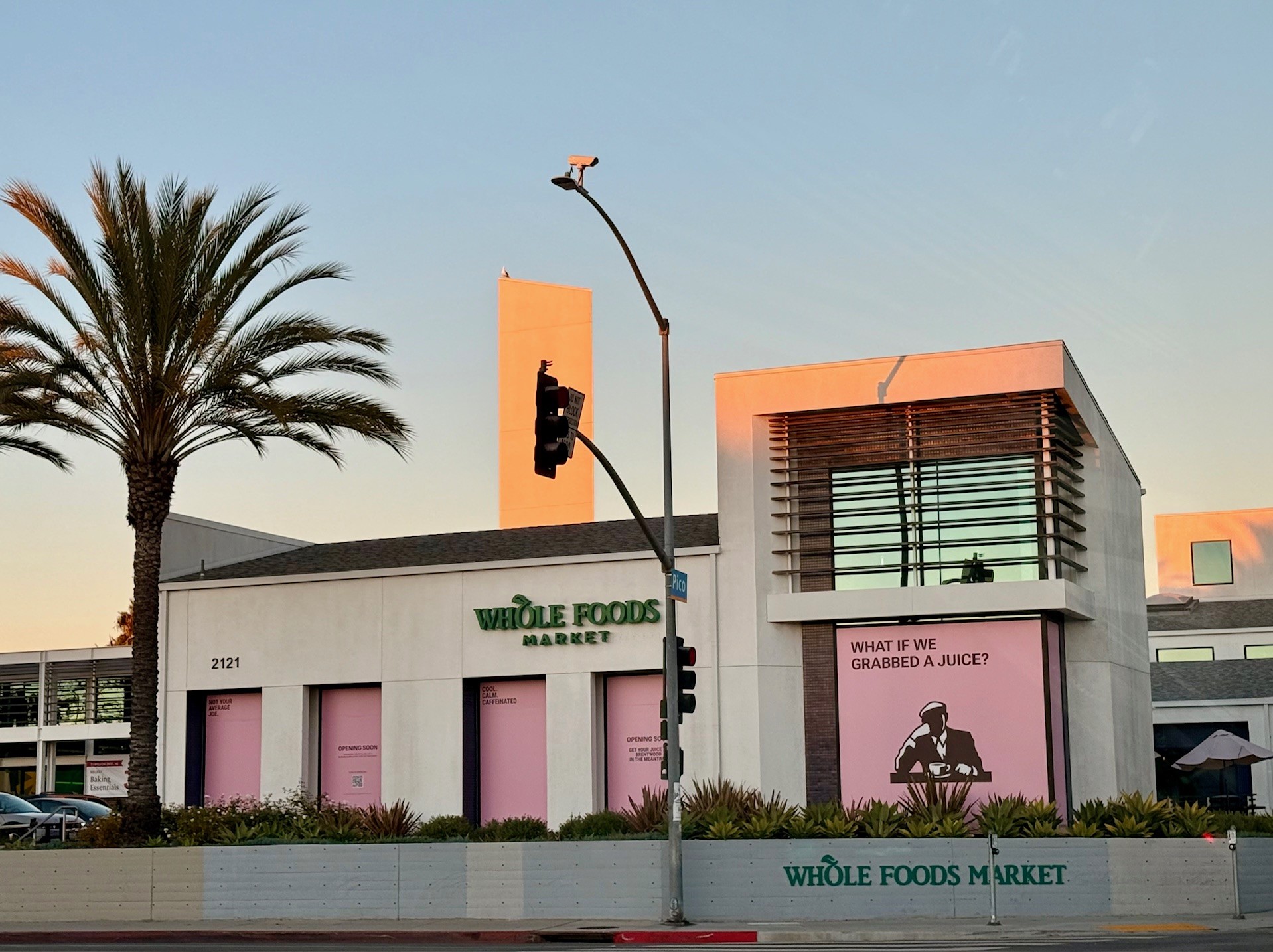 Santa Monica is finally getting an outpost of übercool international lifestyle/juice brand Joe & The Juice, albeit in a curious location. Their signature window paper is up on the free-standing building in the Whole Foods complex on the corner of Pico and Cloverfield. Hailing from Denmark, the chain of coffee and juice bars has locations across Europe, Asia and North America, and has a mission to promote a “contemporary educational platform for how to prepare all people of our movement for a healthy life filled with aspiration and meaning”… as well as coffee.