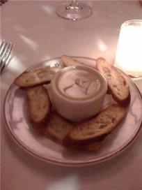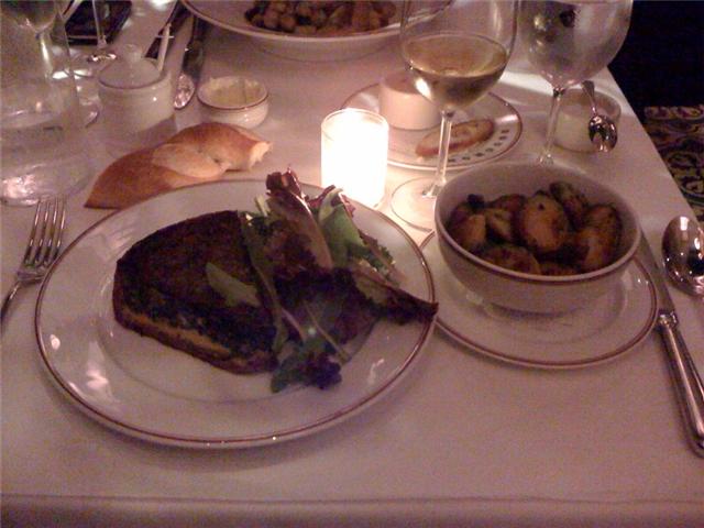 Those of you who have been following know that I felt that Bouchon hadn’t lived up to its standards on a recent visit. You’ll be happy to know that we returned last night and everything was perfect. Service by Kyle was attentive and careful. Our first waiter Krzysztof dropped by our table a number of times to make certain we were well taken care of. Now, in addition to the crispy epi, one is greeted with a white bean puree topped with a glistening layer of olive oil and small toasts. I am absolutely addicted to the leeks vinaigrette with its cottony blanket of sieved egg. The butternut squash soup was creamy and satisfying. I tried the daily quiche, which was florentine. Thomas Keller’s quiches are masterpieces of egg and cream. I’ve tried with varying degrees of success to recreate them. He layers the ingredients inside a sturdy (not flakey) crust made with quantities of butter that defy physics laws and baked in a spring-form pan. The quiche florentine was rich and moist, tempered by the earthiness of the spinach. I ordered it with brussels sprouts, sauteed until darkened on the edges in beurre noisette and capers until they were as sweet as candy. The gnocchi with seasonal vegetables was even more delicious that I remember with the addition of smokey black olives. And as always, the setting was wonderful. The entire dinner was a great success. I’m glad we went back.