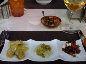 After a few visits to Bouchon, Thomas Keller’s latest outpost next to the Montage hotel, we were able to formulate some impressions. Having eaten at Per Se in New York, the French Laundry in Yountville, and Bouchon Las Vegas, and Bouchon Yountville, we had a certain expectation for food, ambience, and service. While at the French Laundry and Per Se, a vegetarian is spoiled for choice with luxurious garden tasting menus, Bouchon is a bit more limited. Our first foray into BBH was spectacular. We didn’t have a reservation and were seated outside on the patio. Thankfully it was one of those Southern California winter evenings in the 70s and the view was fantastic. Within minutes a warm sourdough epi served was placed directly on the tablecloth (as in France). Accompanied by cultured butter, the loaf was delightfully crispy outside and moist and delicious inside. It was irresistible as we contemplated the folded paper menu. Our waiter, Krzysztof expertly and efficiently guided us through the wine list and the choices with just enough Polish humor to make the evening completely enjoyable. (We were all hysterical as he carefully corrected the Polish swearwords I vaguely recalled from childhood.) We started with the poireaux en vinaigrette et oeufs mimosa (leeks vinaigrette with sieved egg) and salade maraichere au chevre chaud (mixed green salad with warm goat cheese). The salad was very good, but the leeks vinaigrette was spectacular. Perfectly poached and chilled leeks (not slimy as they sometimes can be) with the vinaigrette, little piles of minced piquillo pepper, and a cumulus cloud of sieved egg made for a wonderfully balanced and completely delectable first course. My main was the gnocchi a la Parisienne, various fricasseed vegetables in a beurre noisette with the most addictive gnocchi, shaped like Vienna sausages that had been sautéed to create a ‘skin’ that upon being bitten into, gave way to creamy, fluffy interior. We also sampled the macaroni au gratin, excellently executed with crispy breadcrumbs on top, and of course pommes frites. The evening was so perfect we couldn’t wait to return.