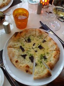 If you haven’t yet been to Culina at the Four Seasons Hotel Los Angeles at Beverly Hills, stop what you’re doing, go to Opentable and make a reservation now. You will not regret it. The newly remodeled restaurant bears little resemblance to the previous one. The interior space is beautifully decorated, bright, and modern. But I recommend asking for a patio seat. You’ll be swept past the crudo bar and onto one of the loveliest spaces for al fresco dining in LA right now. This is what you want Beverly Hills to feel like; comfortable and welcoming yet refined and elegant with a slight clubby feel. I was instantly at home when I took my place on an overstuffed banquette on a recent visit, the balmy evening air heavy with the perfume of orange blossom and night blooming jasmine. John, our server, was friendly and helpful as we studied the menu. The chef is Victor Casanova who has previously worked in Scottsdale, Las Vegas, and San Francisco. I decided on the ‘piccoli piatti’, in which one chooses three of many small plates as a starter. My piati consisted of fava beans with mint and pecorino, artichoke with lemon and rosemary, and eggplant with pesto and caprino (an Italian fresh goat cheese). All three were thoroughly delicious, but it was the fava beans which made me melt. Likewise the ‘mista’ salad consisting of ribbons of asparagus, raw artichoke, mushrooms, arugula, and lemon vinaigrette balanced the flavors perfectly and rivals the best carciofi salads in town (Toscana and Ago). We went straight for the pizzas. The charming manager, Kelly, came around to check on our dinner (a nice touch). With tongue in cheek, she told us that they were going to push Mozza’s pizzas out of the limelight. While I love Mozza, personally I prefer a thinner crust like Gjelina. Here they get it right; crisp, thinner than Mozza but still substantial, charred in places, and wonderfully flavorful. The tartufo (truffle) pizza was remarkable. Other menu items looked impressive as well; a tableside panzanella for two, arancini with truffle oil, spaghetti alla chitarra, a balsamic potato carpaccio pizza. The entire experience was wonderful. I can’t wait to return.