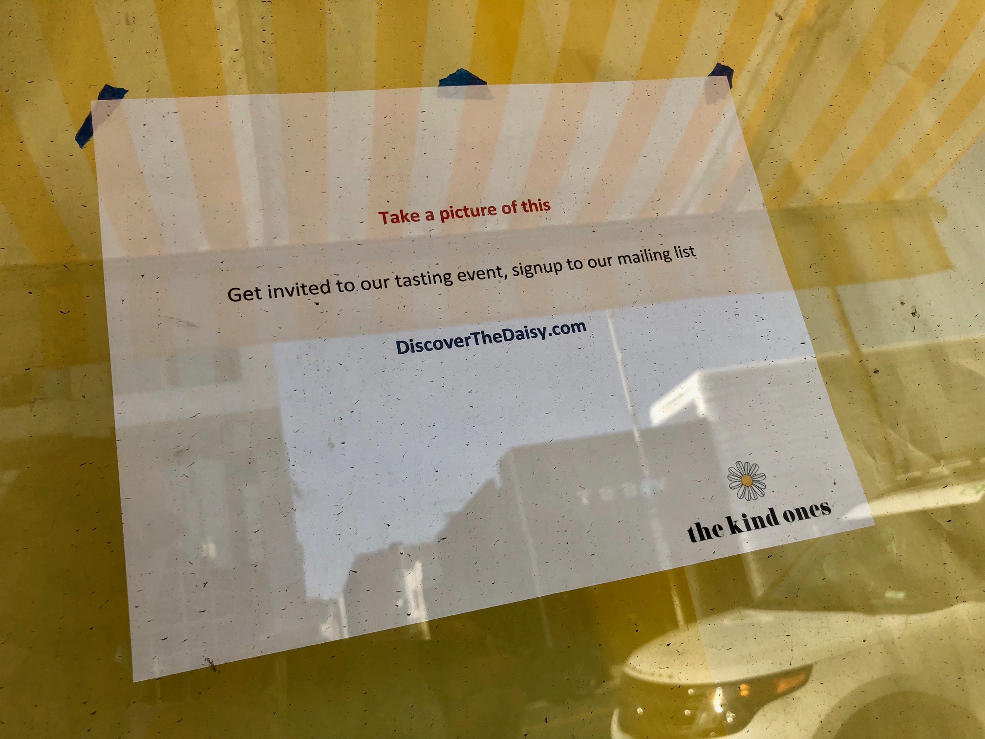 I’ve been carefully watching the space at 9527 S Santa Monica Blvd. in Beverly Hills that used to house ill-fated B H Poke. I knew something was moving in, but I couldn’t confirm what. The new tenants left cryptic messages here and there, and had a daisy painted on the front at one point. But a note taped to the window finally lets the cat out of the bag. It appears that this location will be the future home of The Kind Ones. While there’s not a ton of information out there, this article in Fitt LA explains that The Kind Ones has its roots in Kuwait, and specializes in breakfast sandwiches and bowls, the former being served in open-top boxes on proprietary brioche buns that purportedly require the baker to sign a “non-disclosure agreement “. Their Yelp page lists the opening as November 2nd.