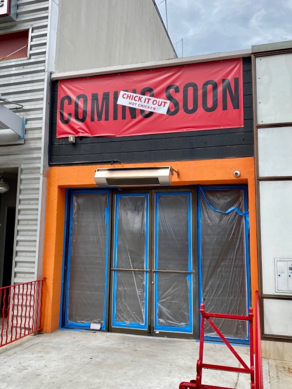 A big “coming soon” banner has recently gone up on the front of the former BurgerIM space at 1237 3rd St. Promenade in Santa Monica. And pasted to the front of that is a smaller banner announcing something called Chick It Out and promising hot chicken. Apparently this has been in the works for a while now, and What Now Los Angeles has a lot more on this story which you can read here.