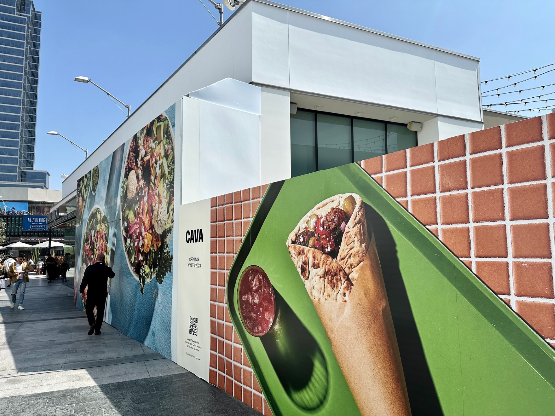 After the renovation of The Westfield Century City Shopping Center a few years ago, this second floor space (next to where Shake Shack is today) was home to international mozzarella specialist Okica. When they moved out, it was supposed to have been a branch of Matthew Kenney’s plant-based pasta joint Sestina. That never materialized. Now, plywood covering the tricky location is letting us know that this will be the future home of Greek/Mediterranean restaurant chain CAVA.