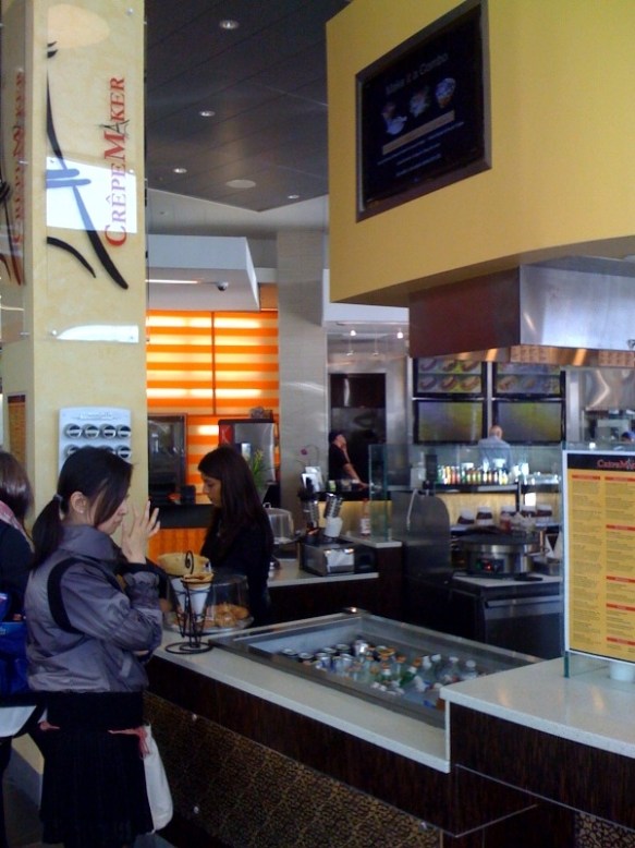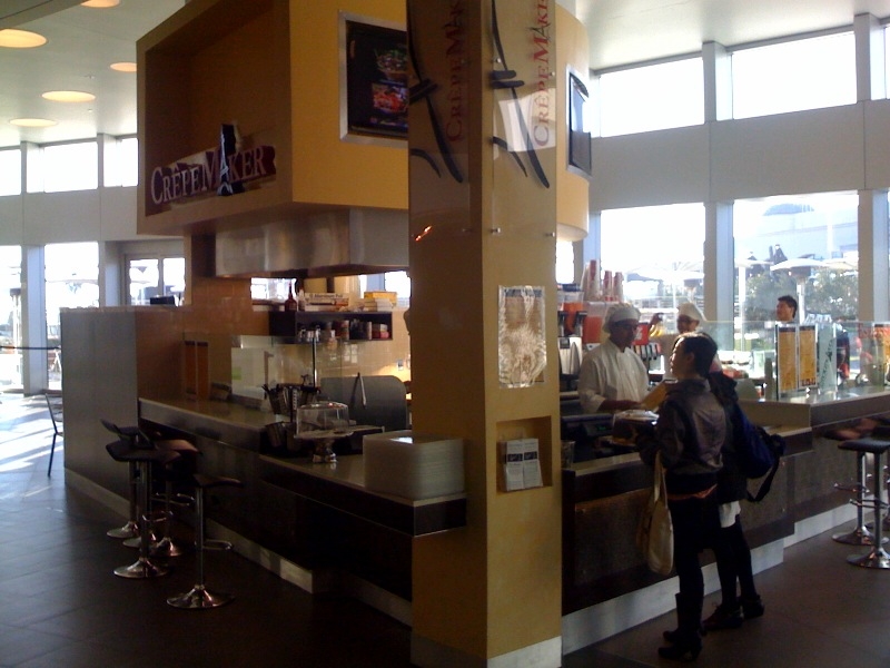 Still more signs of trouble for the consistently sputtering food scene in Santa Monica Place. It appears that another of the concessions on the third floor has disappeared. CrepeMaker has unceremoniously vacated its food court location. In other news… If you were hopeful that the failed The Market space might return with the promise of a new food venture, I’m afraid your hopes are about to be dashed on the rocks. In case you haven’t heard, the space is being converted into the Zimmer Children’s Museum, at least according to the new window displays. Perhaps the Dudes’ Brewing Company, currently under construction, will breathe new life into the third floor.