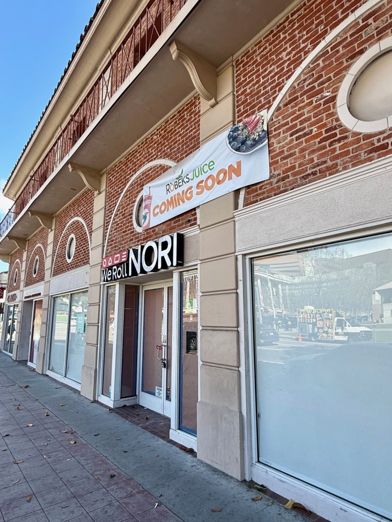 A sharp-eyed reader (Thanks Barry!) noticed a banner hanging over the front of the space 10912 Le Conte Ave in Westwood Village. This address has been a revolving door for many businesses, most recently We Roll Nori. Now it appears that SoCal’s very own smoothie expert Robeks is going to give the tricky location a try.