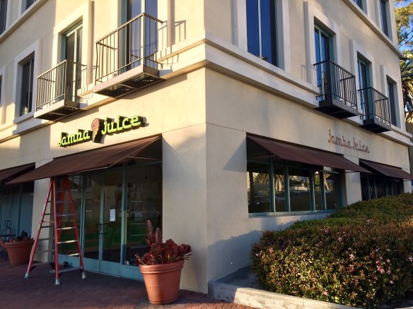 The little strip mall on the corner of Montana and San Vicente in Brentwood seems to have run into a spot of trouble… A while ago, diminutive coffee shop Brew-N-Beans gave up the ghost. More recently, one of the Westside’s last few remaining carb palaces, Noah’s Bagels, quit their location there. And now, it appears that smoothie experts Jamba Juice has closed down. That leaves only scrappy Souplantation in the increasingly vacant mall.
