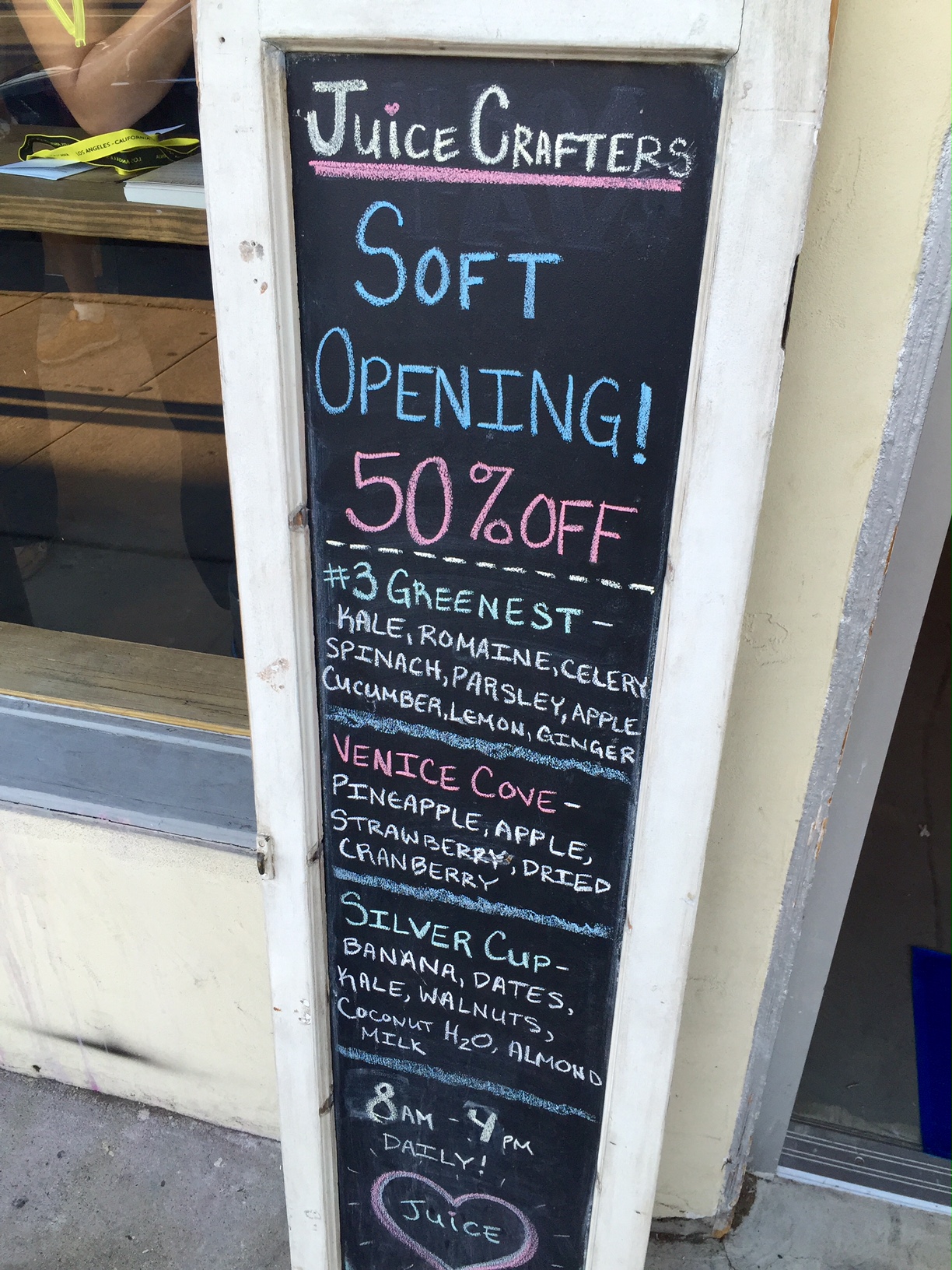 The cold-pressed organic juice craze continues its inexorable conquest of the Westside as evidence by the expansion of local chain Juice Crafters into the storefront at 2811 Ocean Park Blvd. in Santa Monica. Still in their soft opening, you can get 50% off through this Saturday. Read more about their menu and find other locations here.