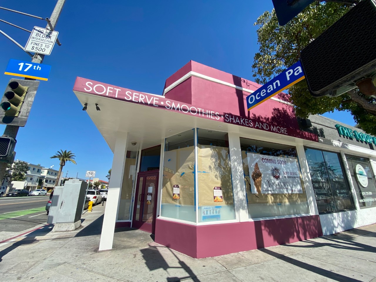 It was in late August when I told you about the devastating closure of local hang-out spot Treats Frozen Yogurt at 1700 Ocean Park Blvd. in Santa Monica. But thankfully, the neighborhood is getting a new frozen treat shop. A banner is up on the front of Treats‘ former location announcing a branch of Yoga-urt. Yoga-urt has two other locations (Glendale and Echo Park) and offers a menu of plant-based soft serve, smoothies, and shakes “made from scratch, starting with hand squeezed almond milk with all organic and dairy free ingredients and added probiotics”.