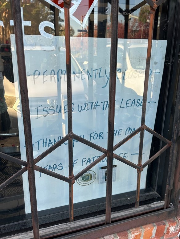 I heard from a concerned reader (Thanks Justin!) who was lamenting the closure of Treats Frozen Yogurt at 1700 Ocean Park Blvd. in Santa Monica. The icy confection shop was a neighborhood gathering spot and much beloved by locals. A gracious hand-written note on the front door thanks “family and friends” for a “decade of fun”. Sad.