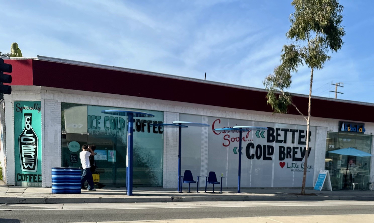 Santa Monica is finally getting an outpost of übercool international lifestyle/juice brand Joe & The Juice, albeit in a curious location. Their signature window paper is up on the free-standing building in the Whole Foods complex on the corner of Pico and Cloverfield. Hailing from Denmark, the chain of coffee and juice bars has locations across Europe, Asia and North America, and has a mission to promote a “contemporary educational platform for how to prepare all people of our movement for a healthy life filled with aspiration and meaning”… as well as coffee.