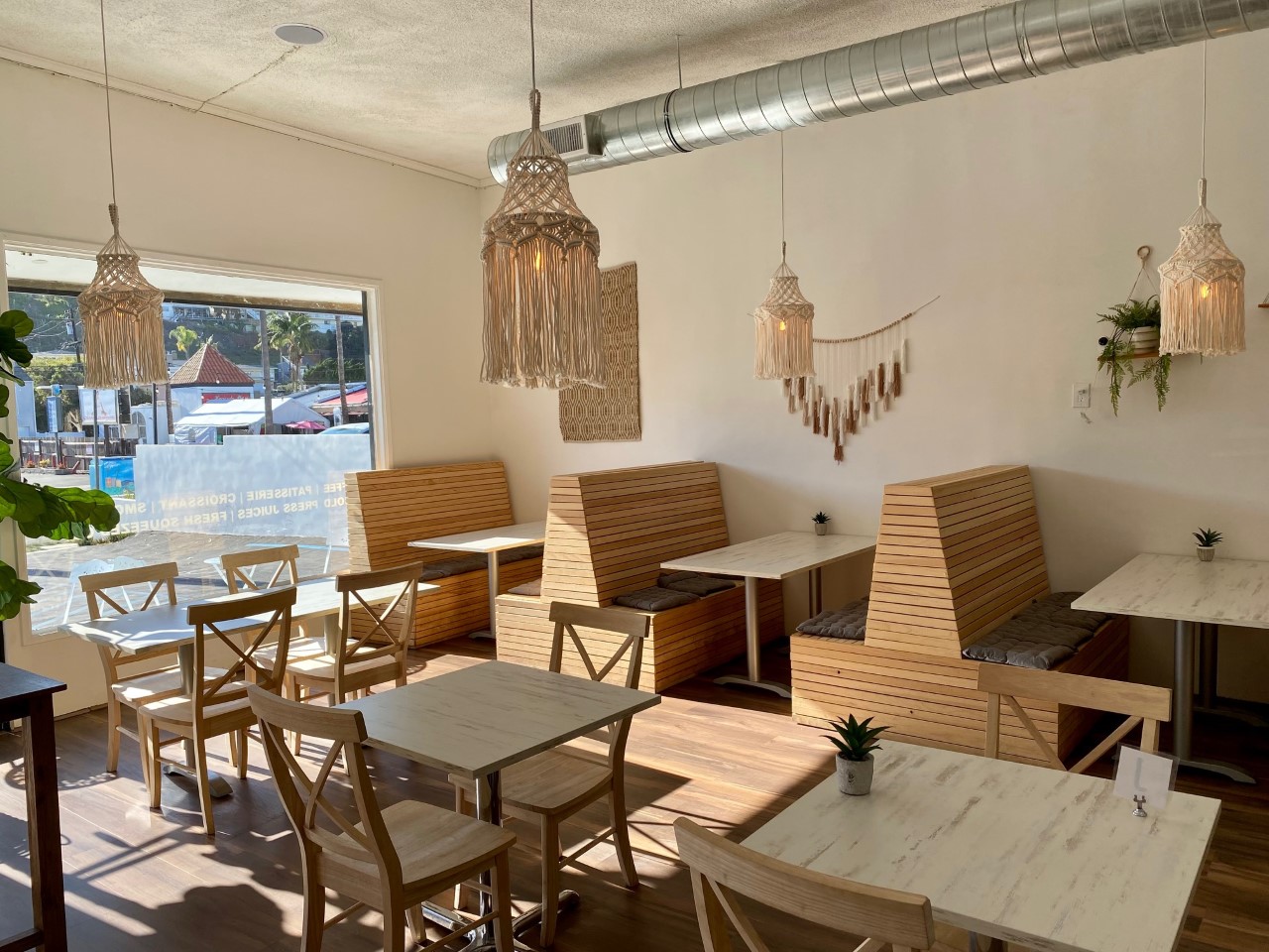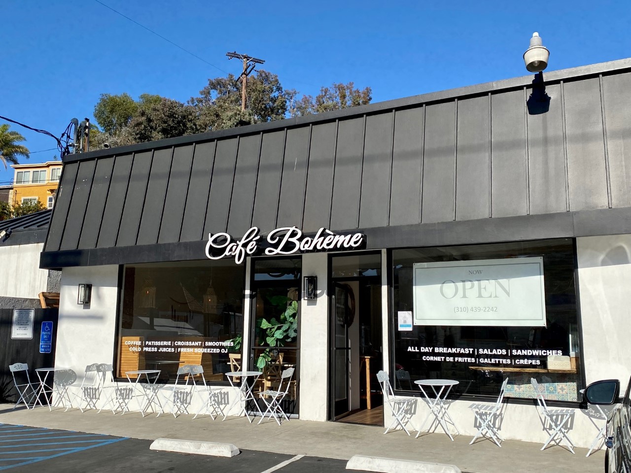 I heard from a reader (Thanks C.P.!) who asked me to check out the new café that recently opened in Playa Del Rey. Café Bohème is a breezy French charmer that sits in an unlikely strip mall at 8248 Pershing Dr. (corner of Manchester). A full remodel of the space has turned it into an airy, bright, cozy dining room and counter with soft wood and macramé accessories. The current menu is tellement Francais and includes omelettes, quiche, tartines, croque monsieur, galettes, and crêpes sucrées . They also produce their own croissants and pastries. Right now they are only open for breakfast and lunch, but dinner plans are in the works. We wish them bonne chance.