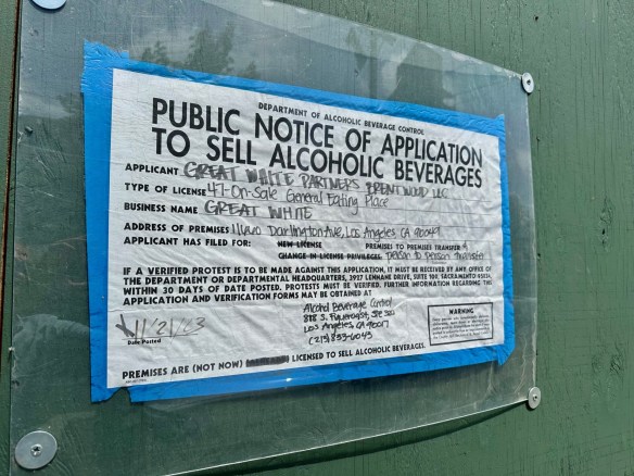 Brentwood is white-hot for new restaurants. I spied a new ABC application on the front of the Contempo Floor Covering store at 908 S Barrington Ave. in Brentwood. It names the new ‘general’ eating place as Sora. A little more digging reveals that this will be the future home of a branch of Sora Temaki Bar. Sora has a location in The Grove, and one on the way in Thousand Oaks, and offers a wide menu of temaki that “brings together innovation and heritage in every hand-rolled bite”.