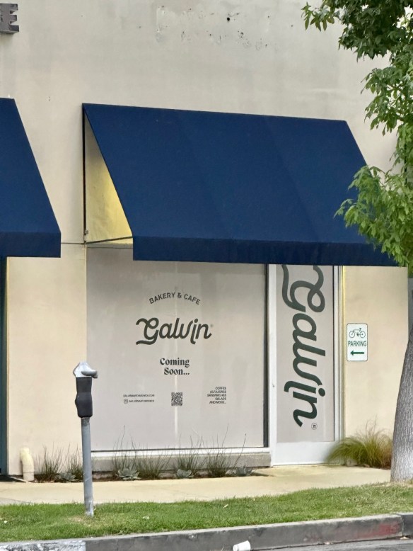 There’s a new restaurant coming to the diminutive space at 625D Montana Ave. in Santa Monica, formerly home to a Subway. The window paper names the new eatery as Galvin Bakery & Cafe. There’s not much info out there on Galvin, but it appears coffee, alfajores, sandwiches, and salads will be on offer.