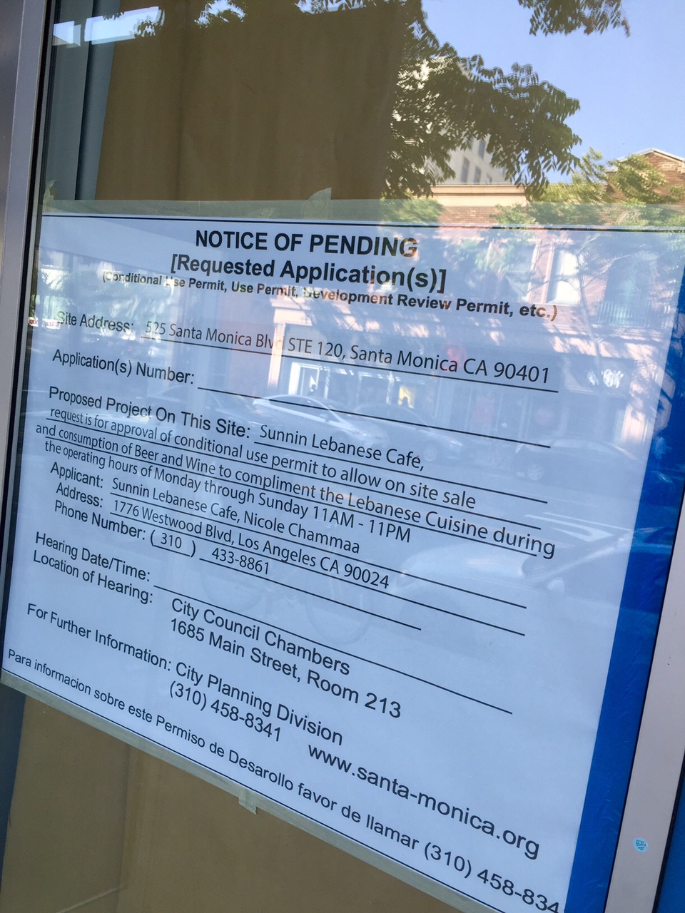 I first told you about the expansion of Sunnin Lebanese Cafe into Downtown Santa Monica back in 2015. Sadly, it appears that the times have gotten the better of them. All signage has been pulled down and the windows are papered over, a sure indication that they have vacated their location at 525 Santa Monica Blvd. Suite 120.