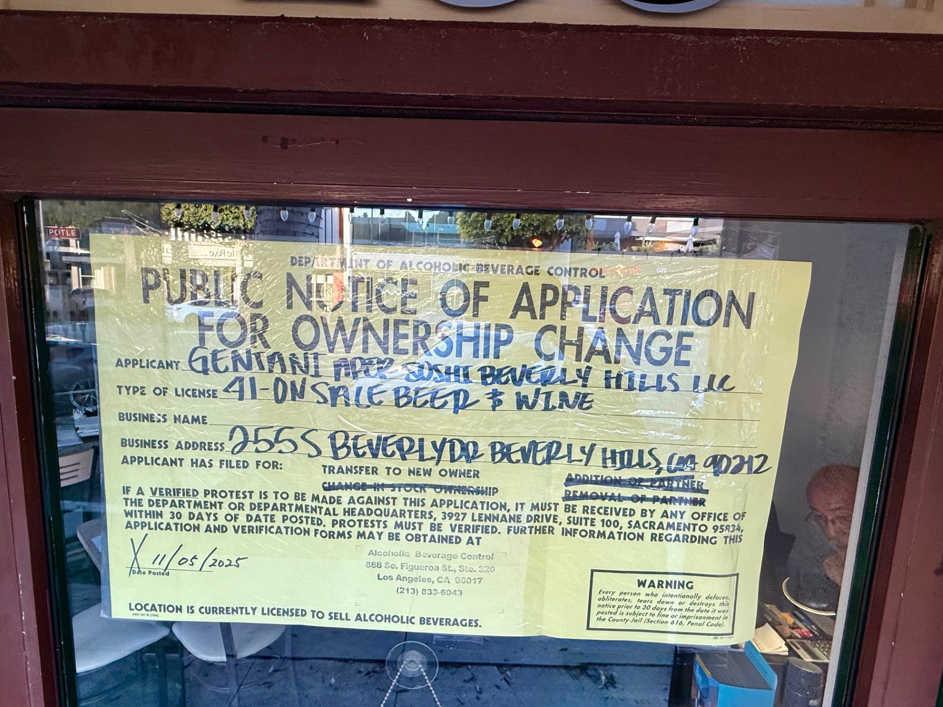 In a town packed with powerhouse restaurants, quiet little Sushi Kiyono has been happily serving devoted locals for 27 years at 255 S Beverly Blvd. Sadly, that is about to come to an end. A gracious note on the front door cites retirement and says that the final day of service will be this Saturday November 22. The note also welcomes their replacement: The Brothers Sushi. An ABC application on the front confirms it. With locations in Woodland Hills, Santa Monica, and Culver City, The Brothers Sushi is the much lauded and wildly popular “high-end” sushi spot that offers seasonal “Omakase Chefs courses or Ala Carte options”.