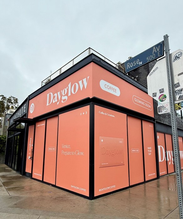 A new coffee concept is landing in Venice. Window paper is up on the space at 540 Rose Ave., previously home to Jeni’s Ice Creams, announcing the arrival of Dayglow. Dayglowbegan in Silverlake in 2018 and has spread to a smattering of locations. They offer “unique coffees, from unique roasters, for unique experiences” with an emphasis on tasting notes.