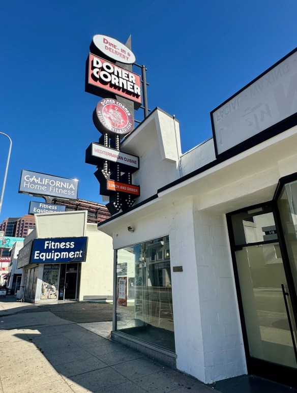The space at 11916 Wilshire in Brentwood has gone through a number of incarnations over the last few years.  Most recently it was The Upper Crust Pizza.  Before that it was a French restaurant, and before that another pizzeria.  But now a new name has gone up on the iconic sign: Doner Corner is moving in and refurbishing the space.  Promising “the true essence of Turkish cuisine”, you can expect a menu of doner, falafel, kibbeh, hummus, and more.