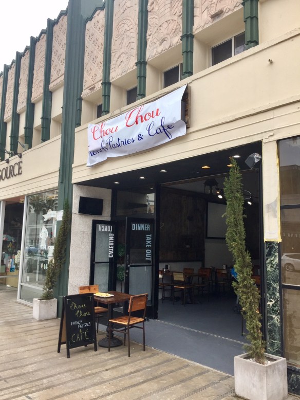 It was about four years ago when I noticed that “fresh & healthy Mediterranean” restaurant Z Garden had opened a second branch at 313 Wilshire Blvd. in Downtown Santa Monica. I’m not sure what happened, but it appears that they have vacated this location. And wasting no time whatsoever, a hastily hung banner announces that Chou Chou French Pastries & Cafe have quietly slipped in. I’m not certain who’s behind this and there’s not a lot of information out there yet. If you’re missing Z Garden, their other location is still open on Pico.